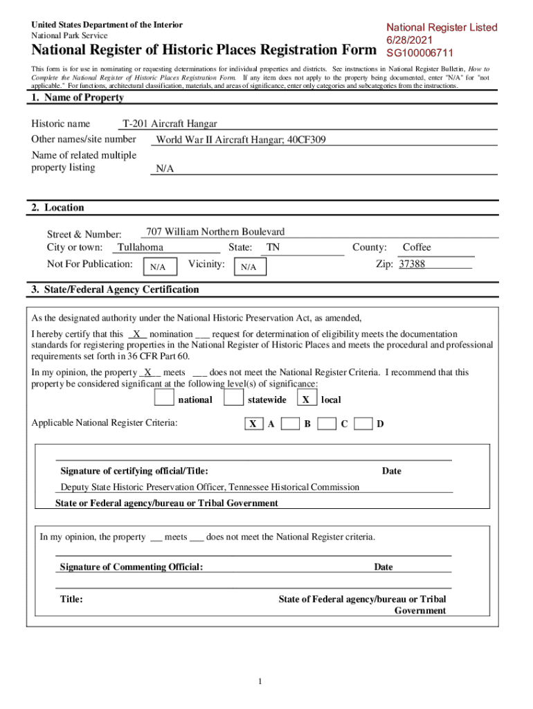 National Register Listed 6/28/2021 SG100006711United States Department of the Interior National Park ServiceNational Register of Historic Places Registration Forms form is for use in nominating or