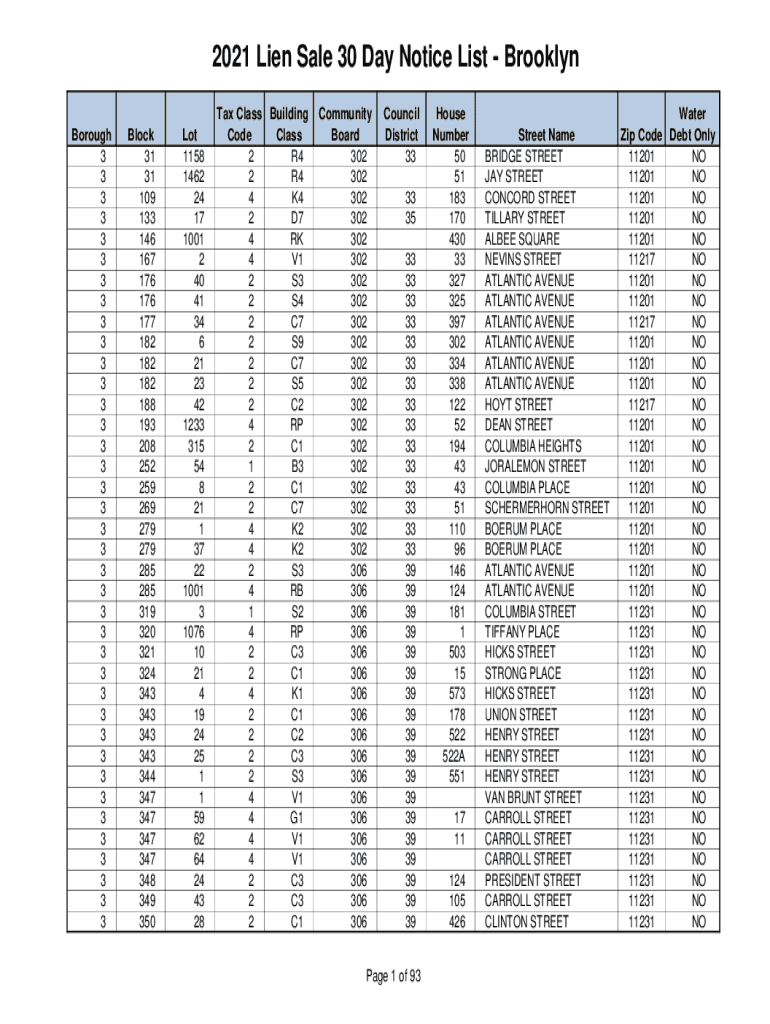 Get the free 2021 Lien Sale 30 Day Notice List - BrooklynNYC.gov