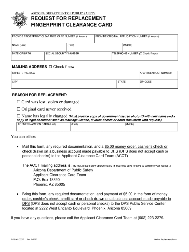 Get the free www.azdps.gov sites defaultRequest for Replacement Fingerprint Clearance Card