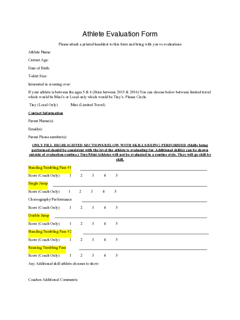 In some cases, athletes themselves may need to fill out evaluation forms to track their progress, identify areas of improvement, and set goals for their athletic development.