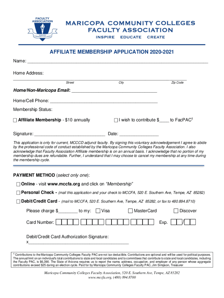 AFFILIATE MEMBERSHIP APPLICATION 20202021