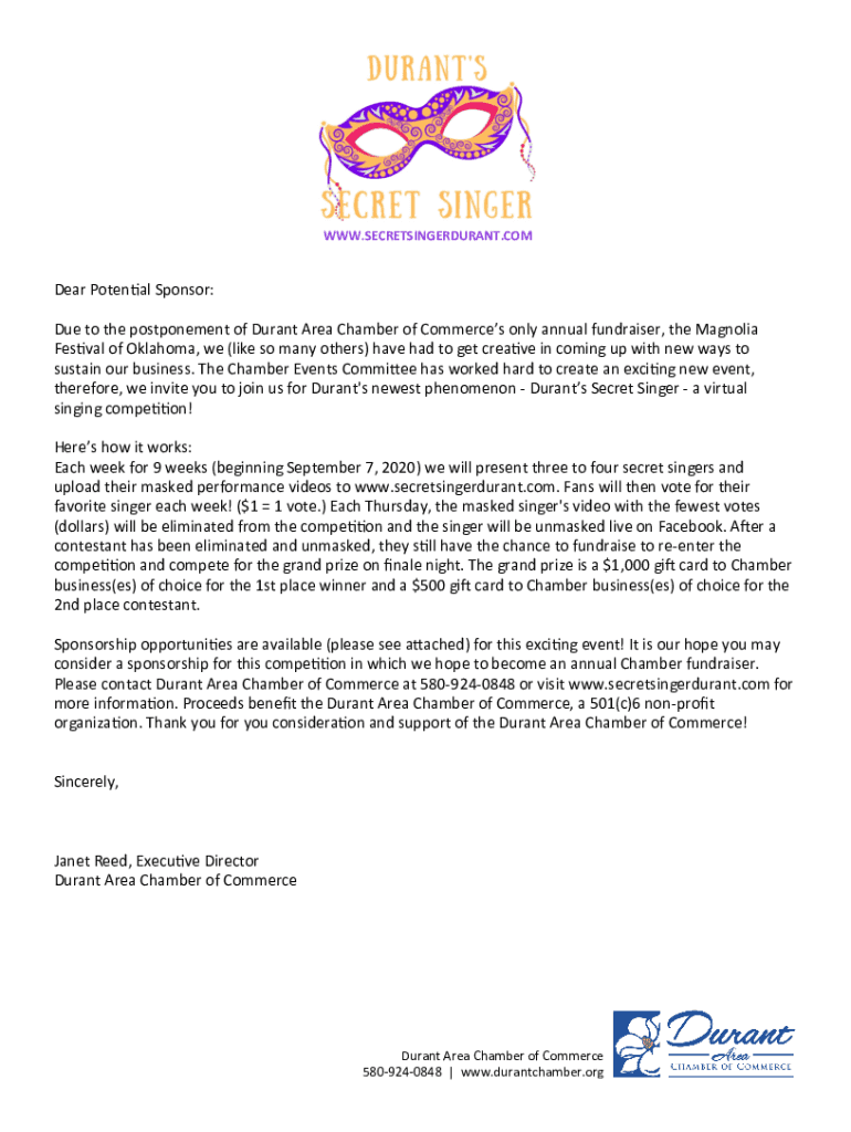 WWW.SECRETSINGERDURANT. Compare Potential Sponsor: Due to the postponement of Durant Area Chamber of Commerce's only annual fundraiser, the Magnolia Festival of Oklahoma, we (like so many others)