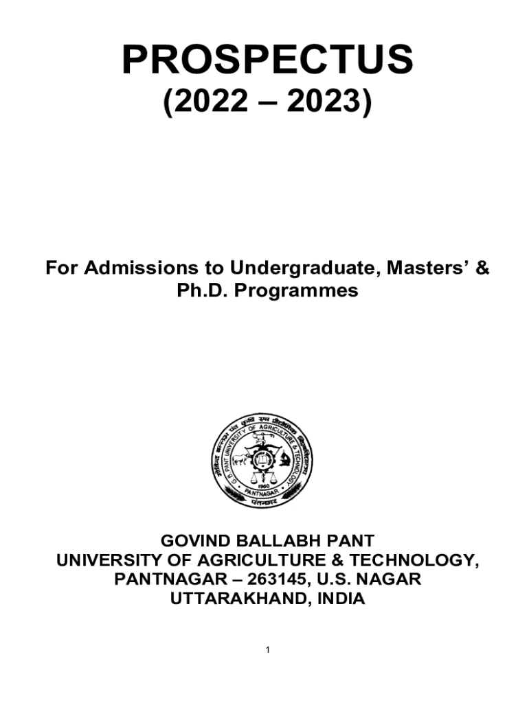 PROSPECTUS (2022 2023)For Admissions to Undergraduate, Masters & Ph.D. ProgrammesGOVIND BALL ABH PANT UNIVERSITY OF AGRICULTURE & TECHNOLOGY, BHATNAGAR 263145, U.S. NAGAR UTTARAKHAND, INDIA 1CONTENTS