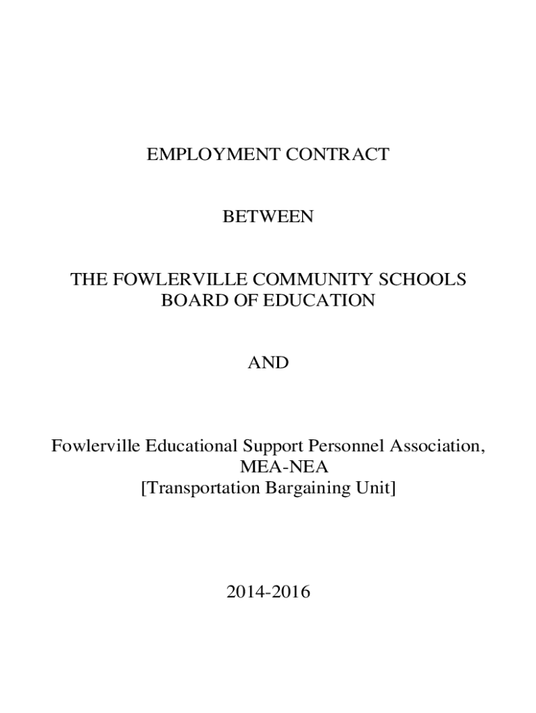 EMPLOYMENT CONTRACTBETWEENTHE PORTERVILLE COMMUNITY SCHOOLS BOARD OF EDUCATIONANDFowlerville Educational Support Personnel Association, MEANER [Transportation Bargaining Unit]20142016INDEX PAGE ARTICLE