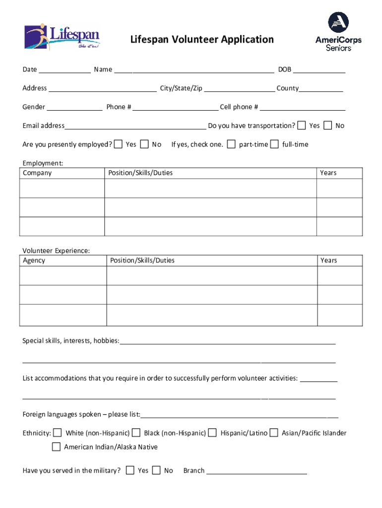 Anyone interested in volunteering at Lifespan is required to file the volunteer application.