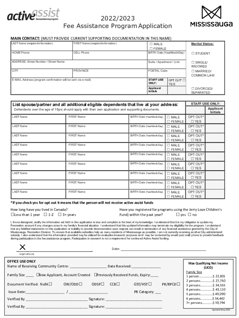 Fee Assistance Program Application