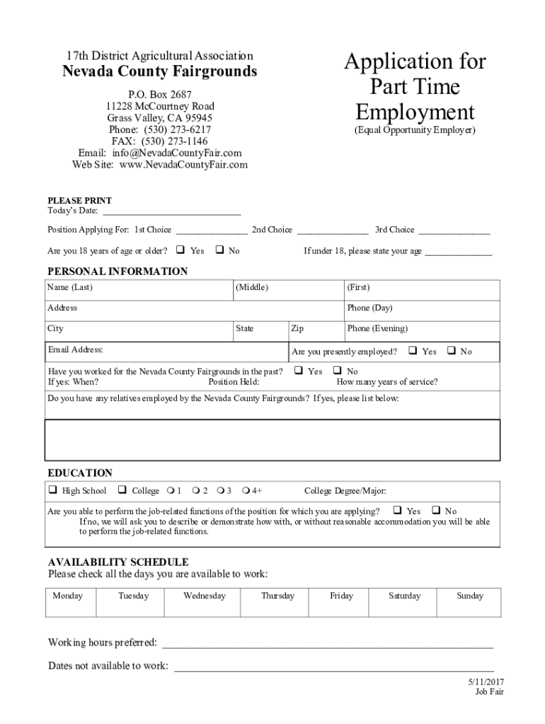 Get the free nevadacountyfair.comwp-contentuploadsApplication for Part Time Employment - Nevada C...