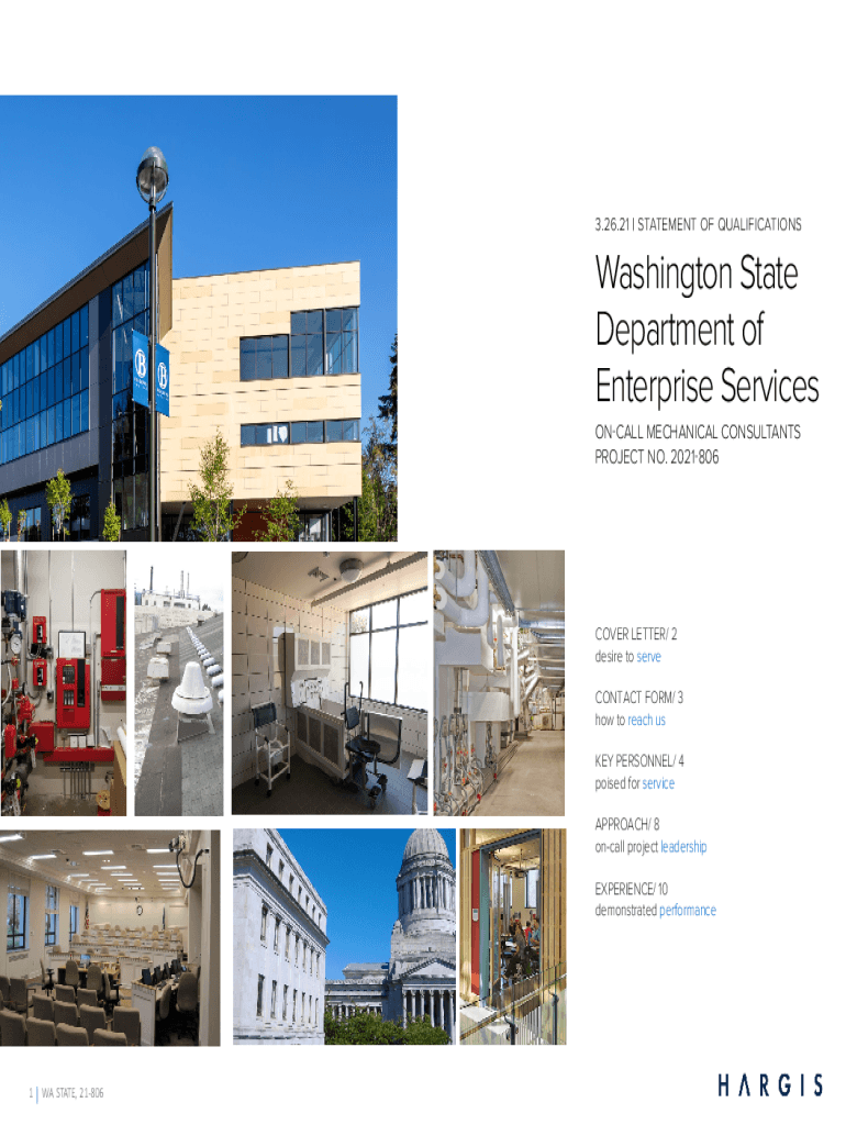 3.26.21 | STATEMENT OF QUALIFICATIONS Washington State Department of Enterprise Services CALL MECHANICAL CONSULTANTS PROJECT NO. 2021806COVER LETTER/ 2 desire to serve CONTACT FORM/ 3 how to reach