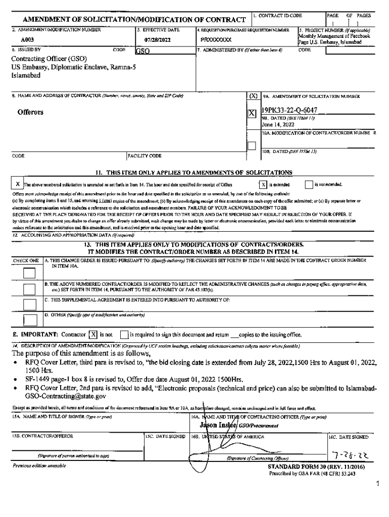 Get the free 1X1 The purpose of this amendment is as follows, RFQ Cover ...