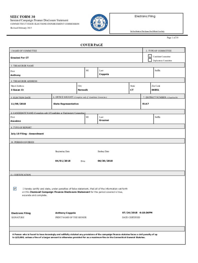 Electronic Filings EEC FORM 30Itemized Campaign Finance Disclosure Statement