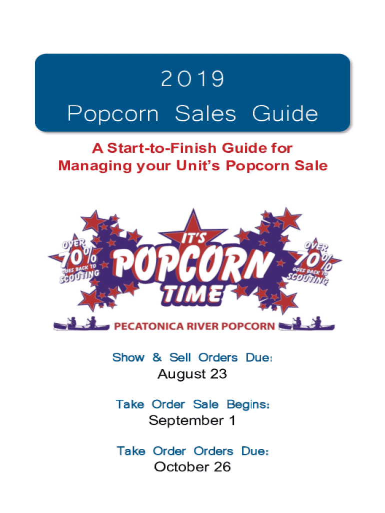 12019 Popcorn Sales Guide A StarttoFinish Guide for Managing your Units Popcorn Sale Show & Sell Orders Due: August 23Take Order Sale Begins: September 1Take Order Orders Due: October 26 popcorn.salsa.org2Table
