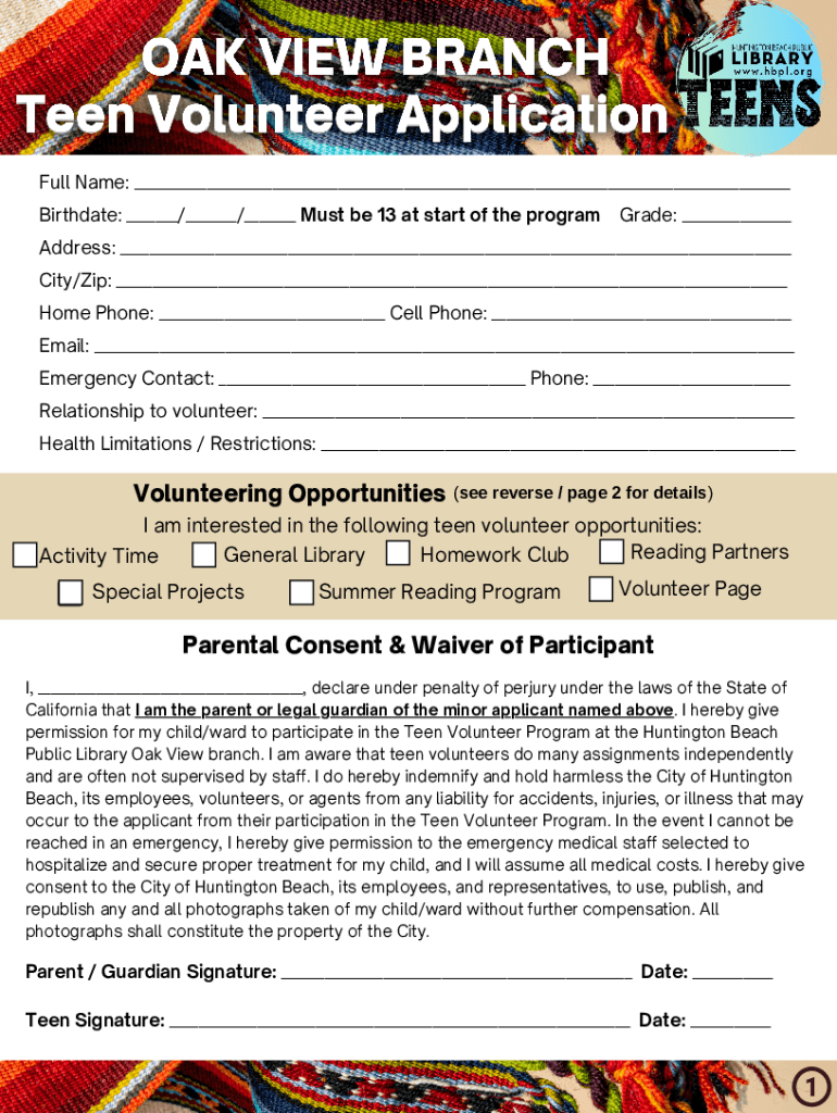 Full Name: ___ Birthdate: ___/___/___ Must be 13 at start of the programGrade: ___Address: ___ City/Zip: ___ Home Phone: ___ Cell Phone: ___ Email: ___ Emergency Contact: ___ Phone: ___ Relationship