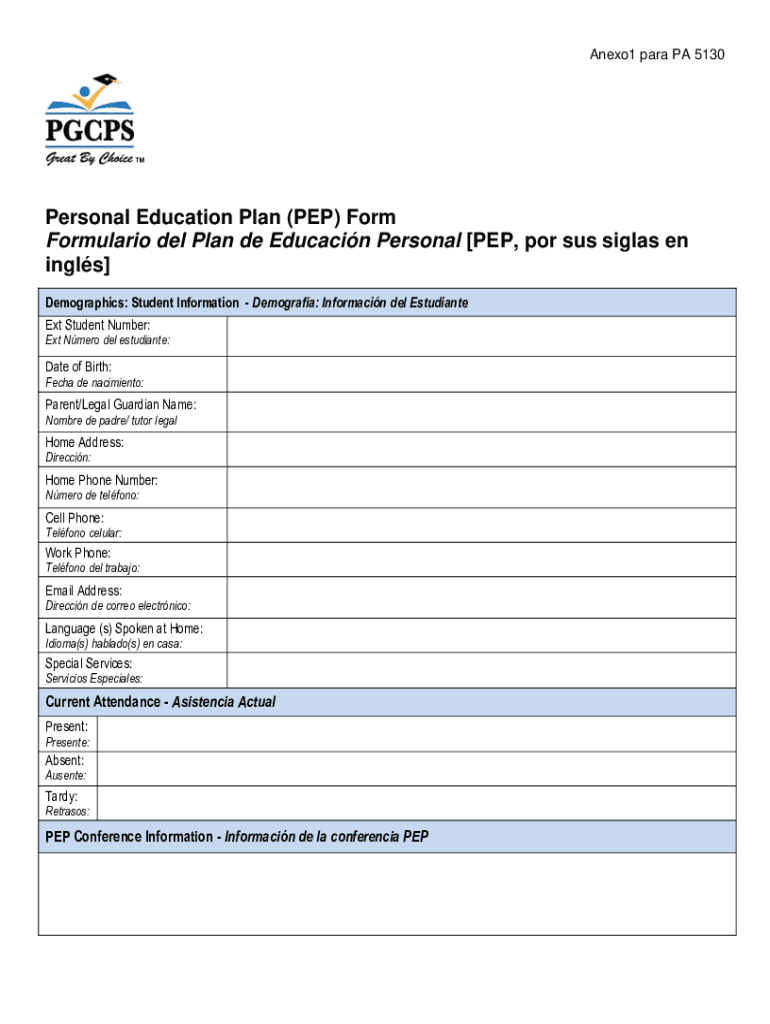 Anexo1 para PA 5130Personal Education Plan (PEP) Form Formulation Del Plan de Educacin Personal [PEP, POR SUS Silas en single] Demographics: Student Information Demography: Information del Estudiante