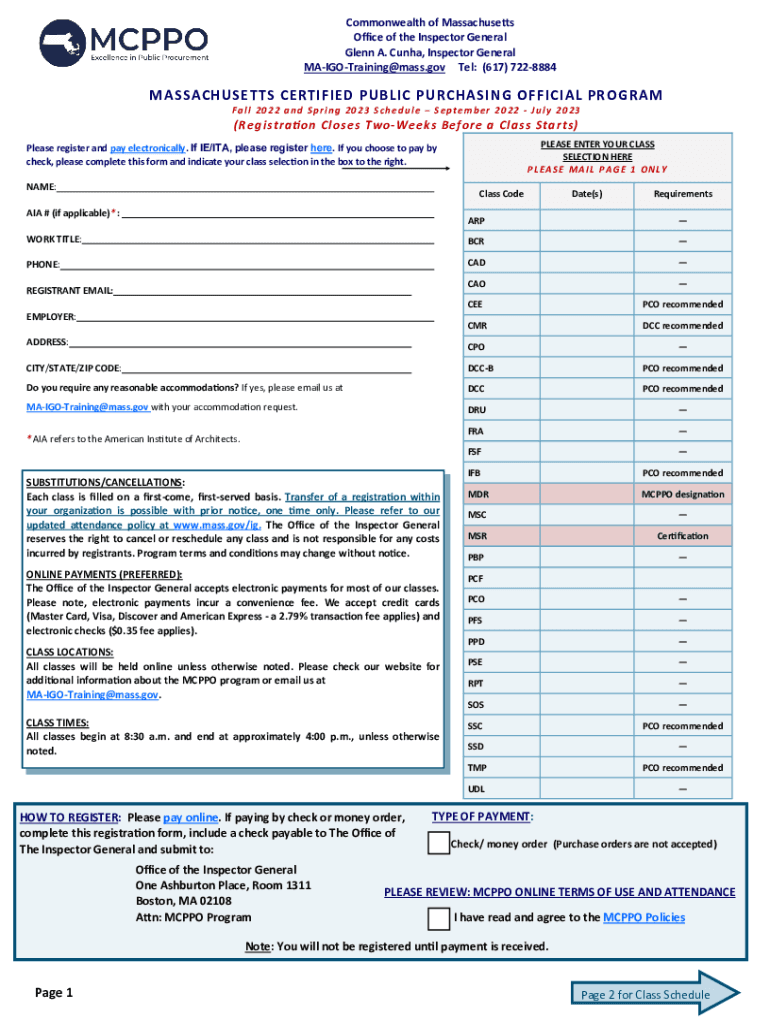 Commonwealth of Massachusetts s One of the Inspector General Glenn A. Cuba, Inspector General MAIGOTraining@mass.gov Tel: (617) 7228884MASSACHUSETTS CERTIFIED PUBLIC PURCHASING OFFICIAL PROGRAM Fall