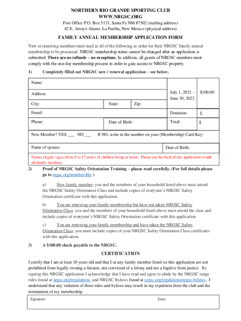 Get the free NORTHERN RIO GRANDE SPORTING CLUB WWW.NRGSC.ORG INDIVIDUAL ANNUAL ...