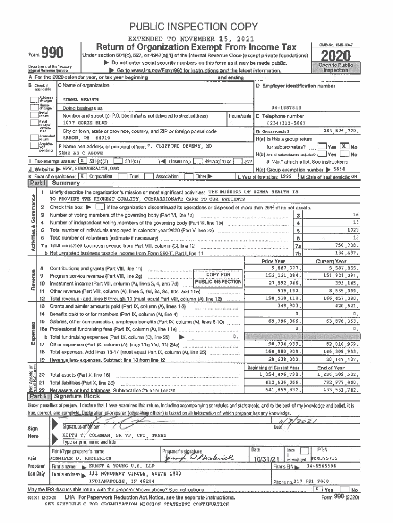 Summa Health nonprofit healthcare is required to file by the healthcare organization itself.