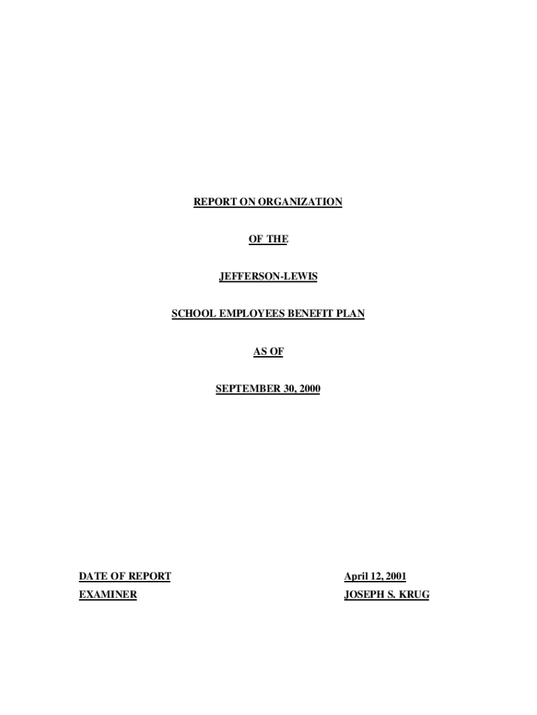 REPORT ON ORGANIZATION THEJEFFERSONLEWISSCHOOL EMPLOYEES BENEFIT PLANS SEPTEMBER 30, 2000DATE OF REPORT April 12, 2001EXAMINERJOSEPH S. TRUSTABLE OF CONTENTSITEM NO.PAGE NO.1. Organization22. Scope