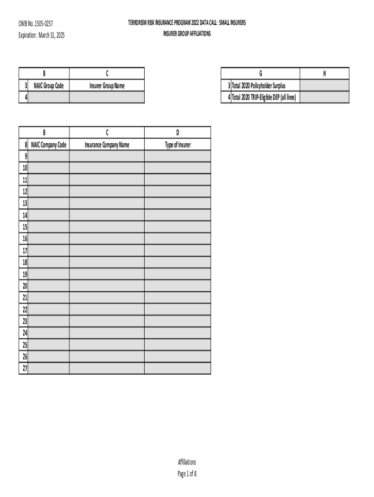 INSURER GROUP AFFILIATIONS OMB No. 15050257