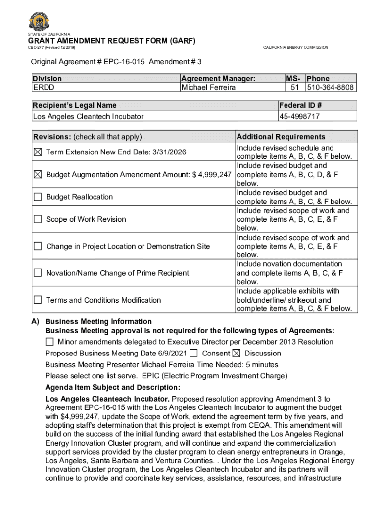 CEC277 (Revised 12/2019)CALIFORNIA ENERGY COMMISSIONOriginal Agreement # EPC16015 Amendment # 3