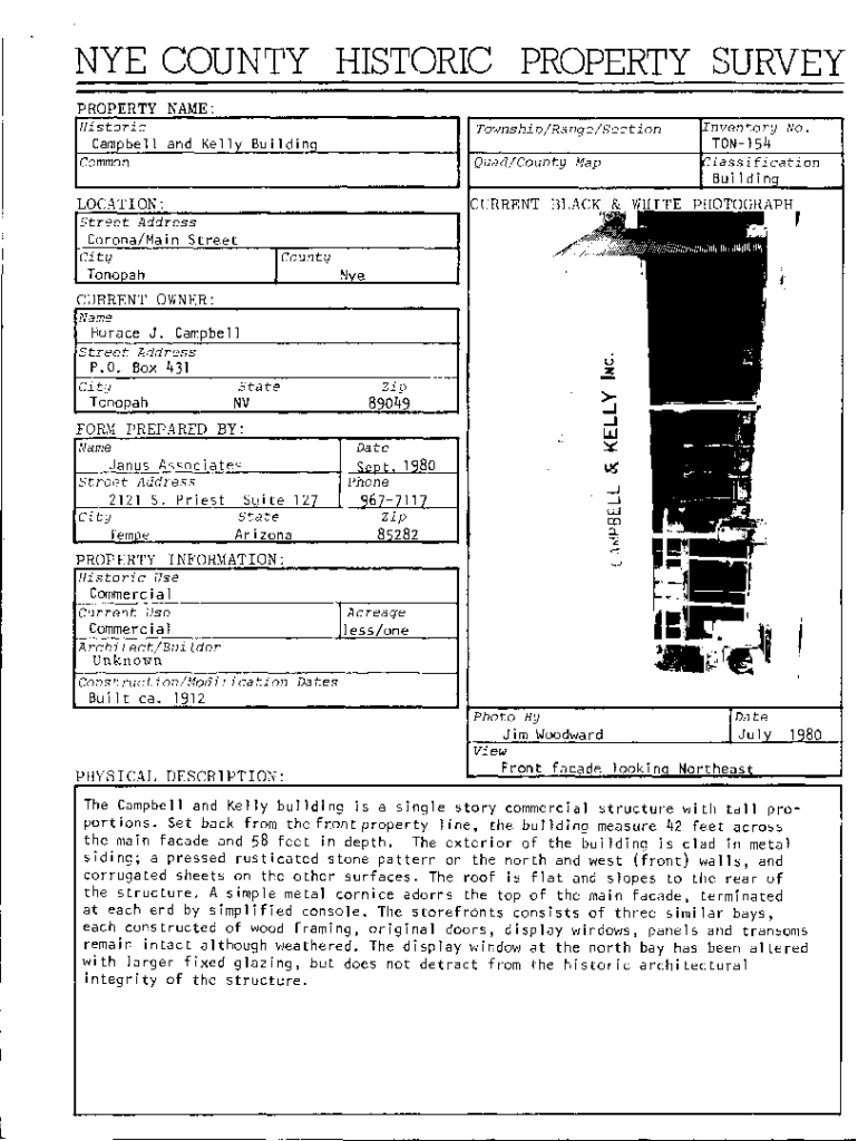 The npgallerynpsgovpdfhostdocsnye county historic property is a form used to report information about historic properties in Nye County.