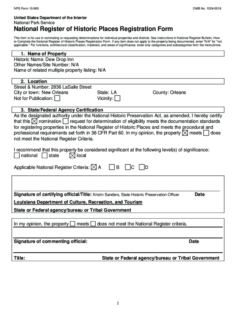 NPS Form 10900OMB No. 10240018 United States Department of the International Park ServiceNational Register of Historic Places Registration Form This form is for use in nominating or requesting determinations
