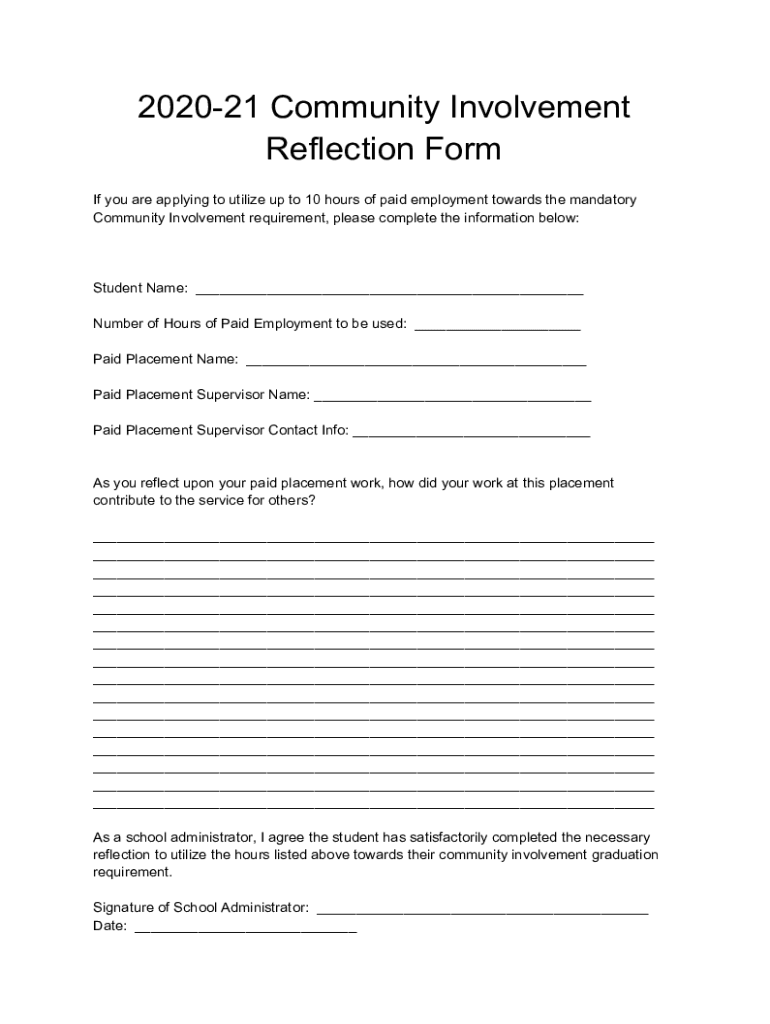 202021 Community Involvement Reflection Form If you are applying to utilize up to 10 hours of paid employment towards the mandatory Community Involvement requirement, please complete the information