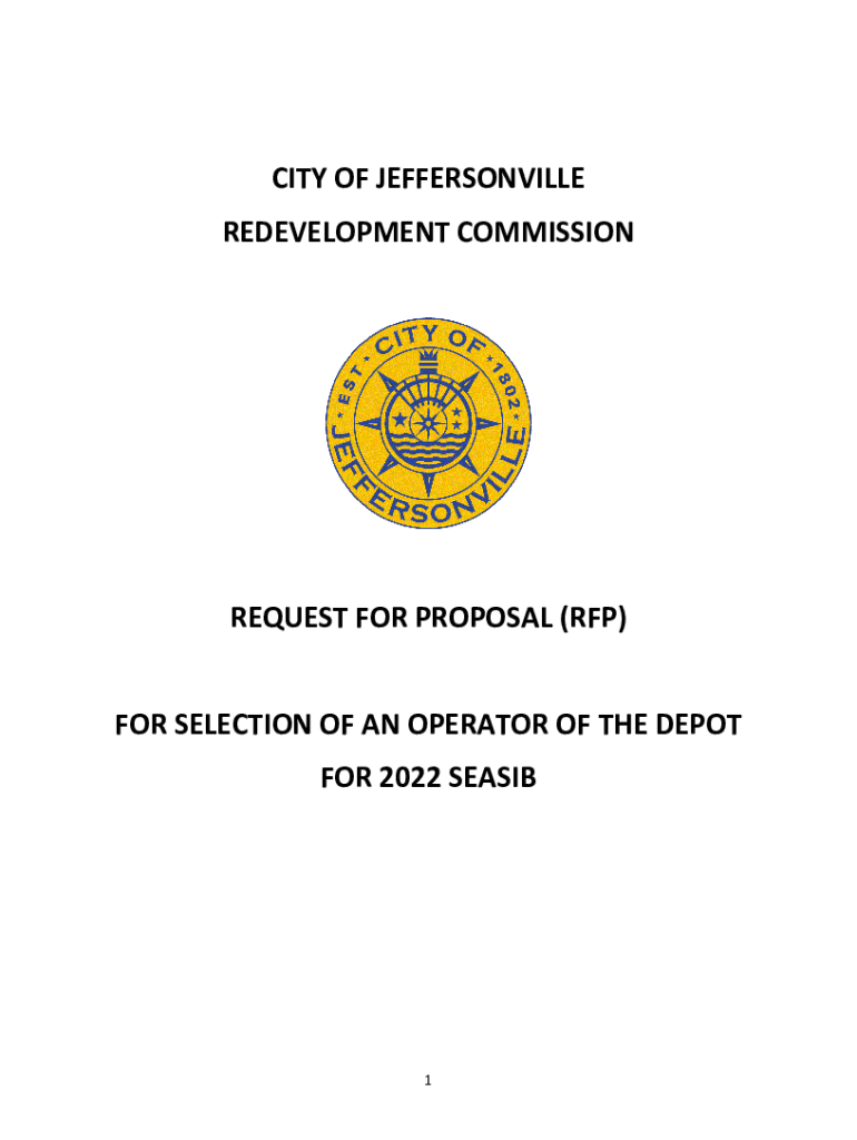 CITY OF JEFFERSONVILLE REDEVELOPMENT COMMISSIONREQUEST FOR PROPOSAL (RFP) FOR SELECTION OF AN OPERATOR OF THE DEPOT FOR 2022 SEASIB1The City of Jeffersonville Redevelopment Commission Request of Proposal