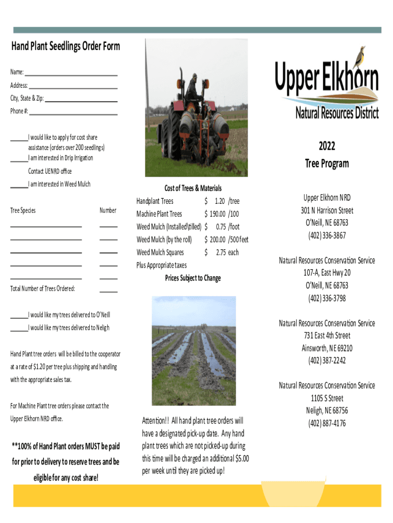 Hand Plant Seedlings Order Form Name: Address: City, State & Zip: Phone #: I would like to apply for cost share assistance (orders over 200 seedlings) I am interested in Drip Irrigation2022 Tree ProgramContact