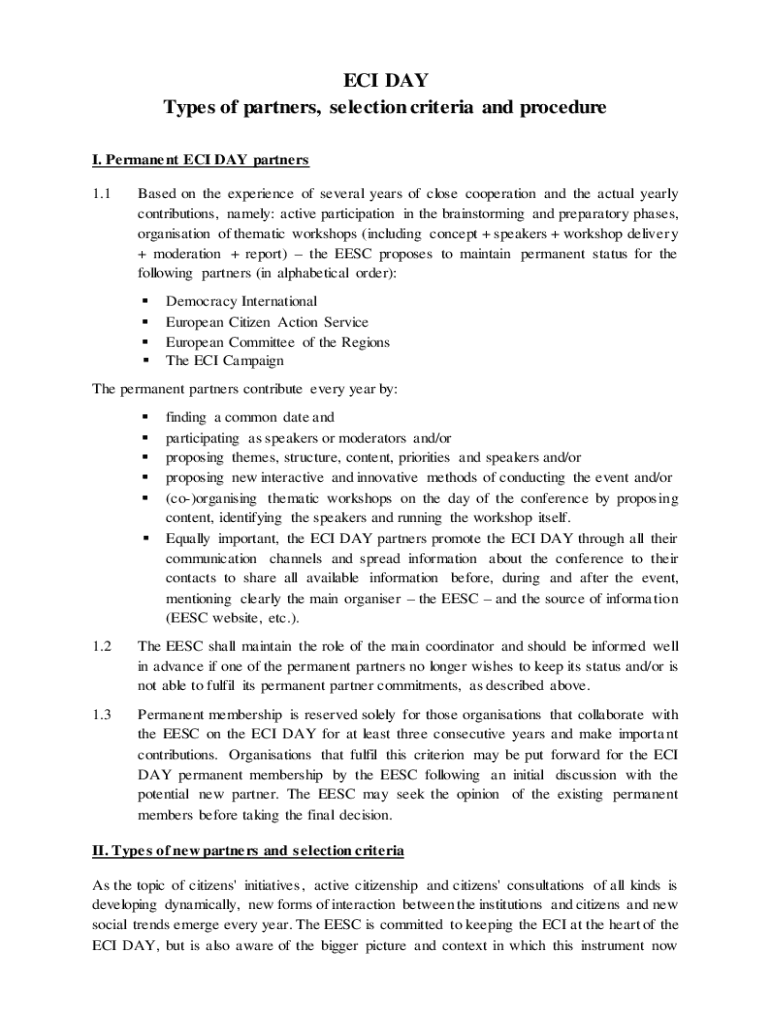 PCI DAY Types of partners, selection criteria and procedure I. Permanent PCI DAY partners 1.1Based on the experience of several years of close cooperation and the actual yearly contributions, namely: