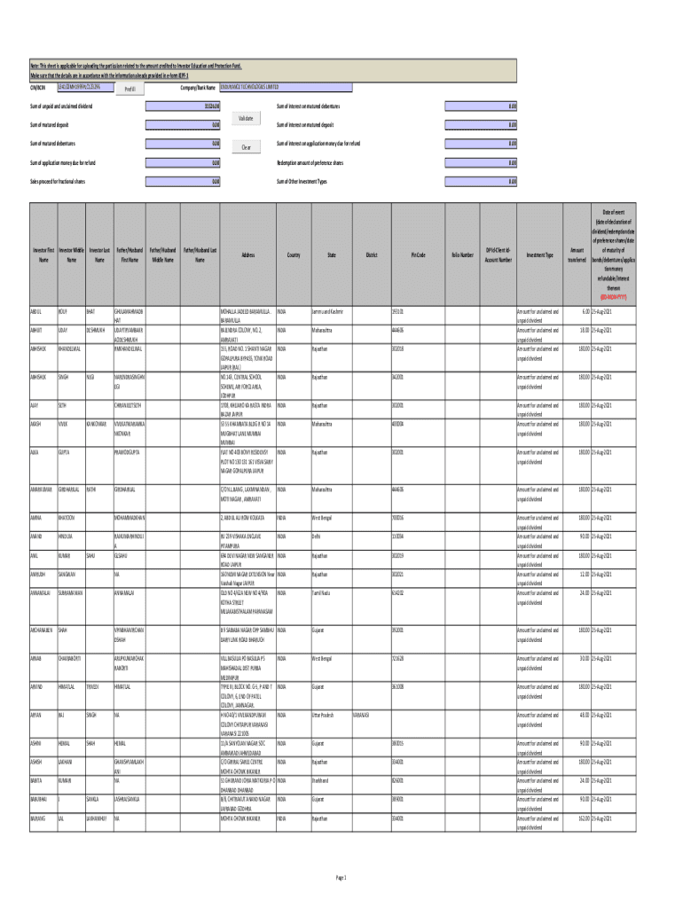 Get the free Endurance Technologies Ltd Form IEPF-1 Final Div 2020-2021- revised 1.xls