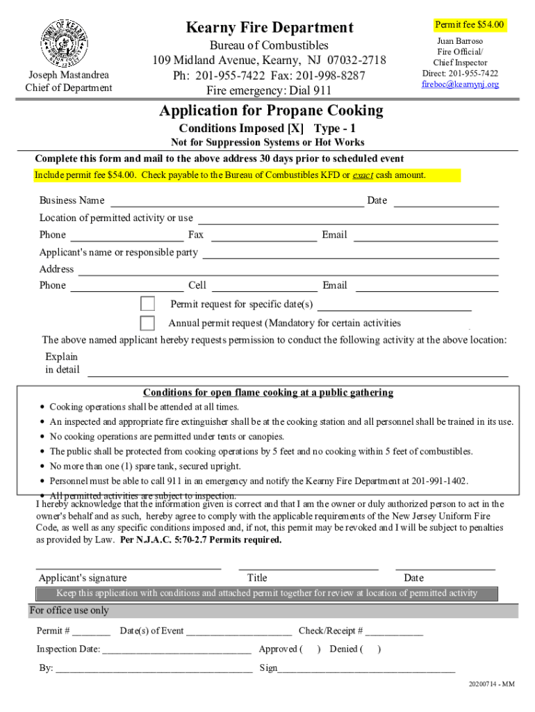 Get the free Application for Propane Cooking - kearnynj.org