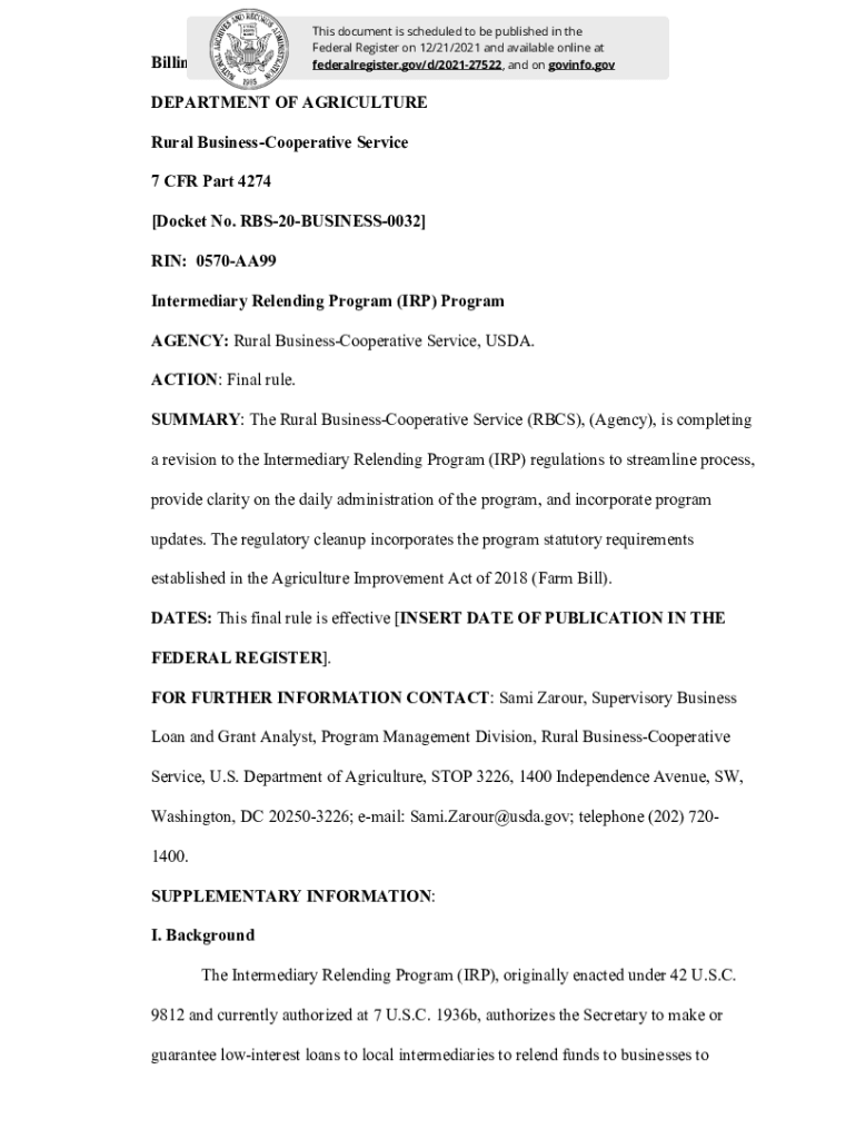 federalregister.gov/d/202127522, and on gov info. Department OF AGRICULTURE