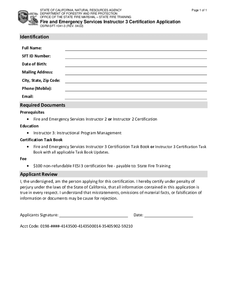 Get the free Fire and Emergency Services Instructor 1 - California - osfm fire ca