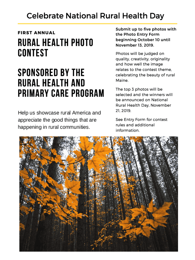 Celebrate National Rural Health Day FIRST ANNUALRural Health photo contest Sponsored by the Rural Health and Primary Care Program Help us showcase rural America and appreciate the good things that
