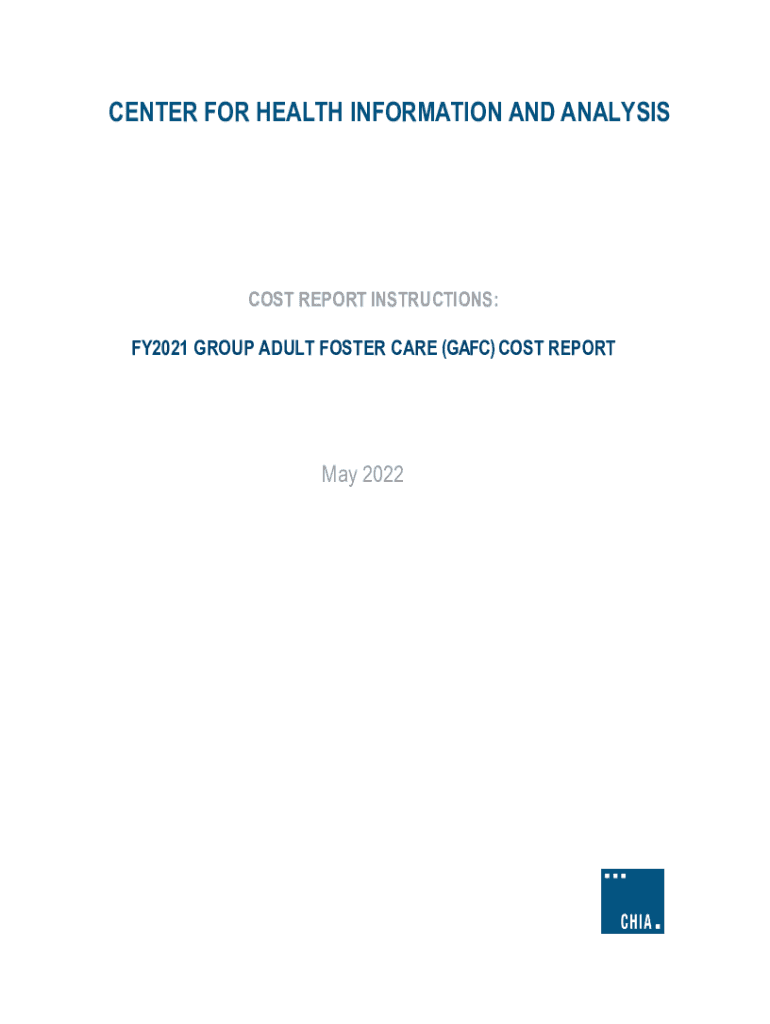 CENTER FOR HEALTH INFORMATION AND ANALYSISCOST REPORT INSTRUCTIONS: FY2021 GROUP ADULT FOSTER CARE (AFC) COST REPORT May 2022Center for Health Information and Analysis Group Adult Foster Care FY21