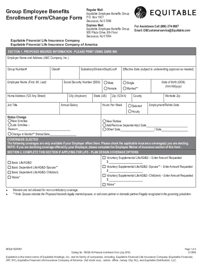 Group Employee Benefits Enrollment Form/Change Irregular Mail: Equitable Employee Benefits Group P.O. Box 1507 Secaucus, NJ 07096 Express Mail: Equitable Employee Benefits Group 500 Plaza Drive, 6th