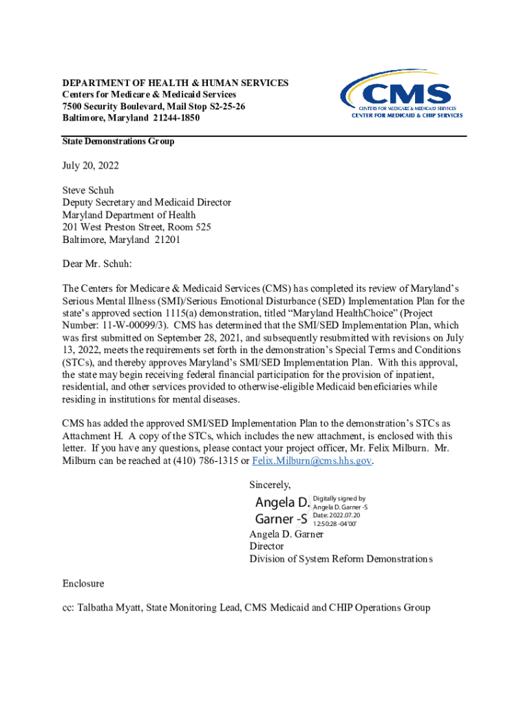 DEPARTMENT OF HEALTH & HUMAN SERVICES Centers for Medicare & Medicaid Services 7500 Security Boulevard, Mail Stop S22526 Baltimore, Maryland 212441850 State Demonstrations Group July 20, 2022, Steve