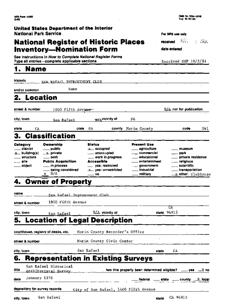 0 MB No. 10240018 Exp. 103184NFS Form 10900United States Department off the Interior National Park ServiceNow NFS UM onlyNational Register of Historic Places InventoryNomination Form date entered