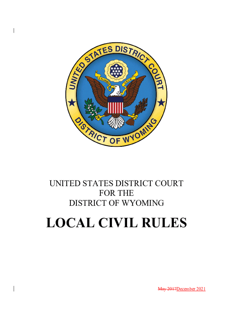 UNITED STATES DISTRICT COURT FOR THE DISTRICT OF WYOMINGLOCAL CIVIL RULES May 2017December 2021TABLE OF CONTENTS I. SCOPE OF LOCAL RULES .................................................................................................