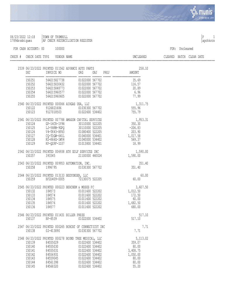 |AP CHECK RECONCILIATION REGISTERED CASH ACCOUNT: 00. Mun Is.