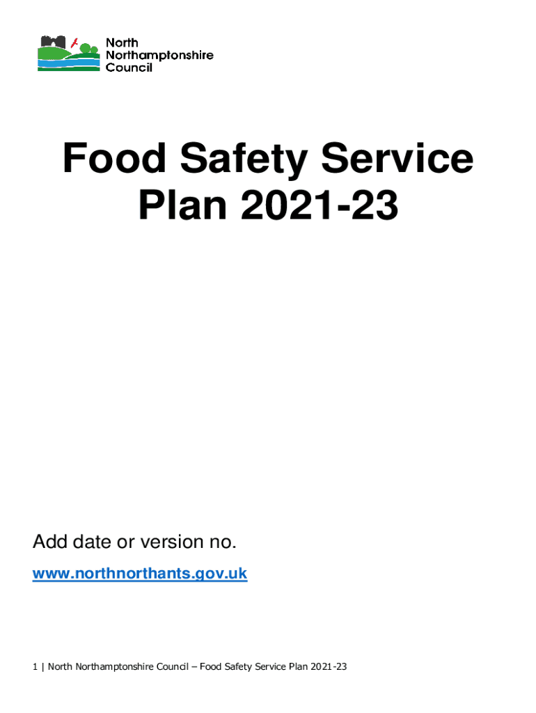 Food Safety Service Plan 202123Add date or version no. www.northnorthants.gov.uk1 | North Northamptonshire Council Food Safety Service Plan 202123Document Version Control **Complete this section,