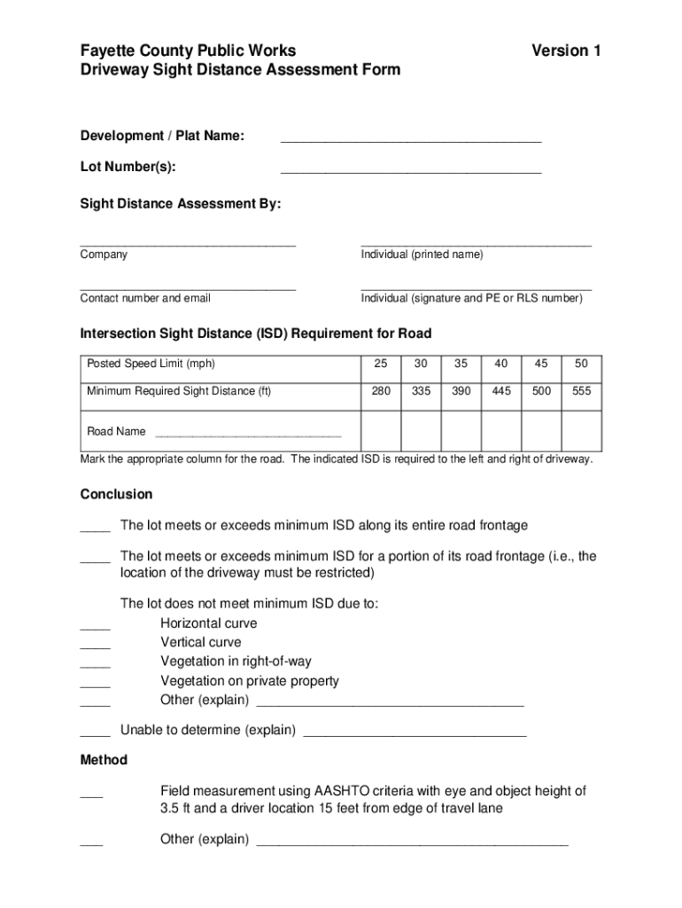 Fayette County Public Works Driveway Sight Distance Assessment Conversion 1Development / Plat Name:___Lot Number(s):___Sight Distance Assessment By: ______CompanyIndividual (printed name)______Contact