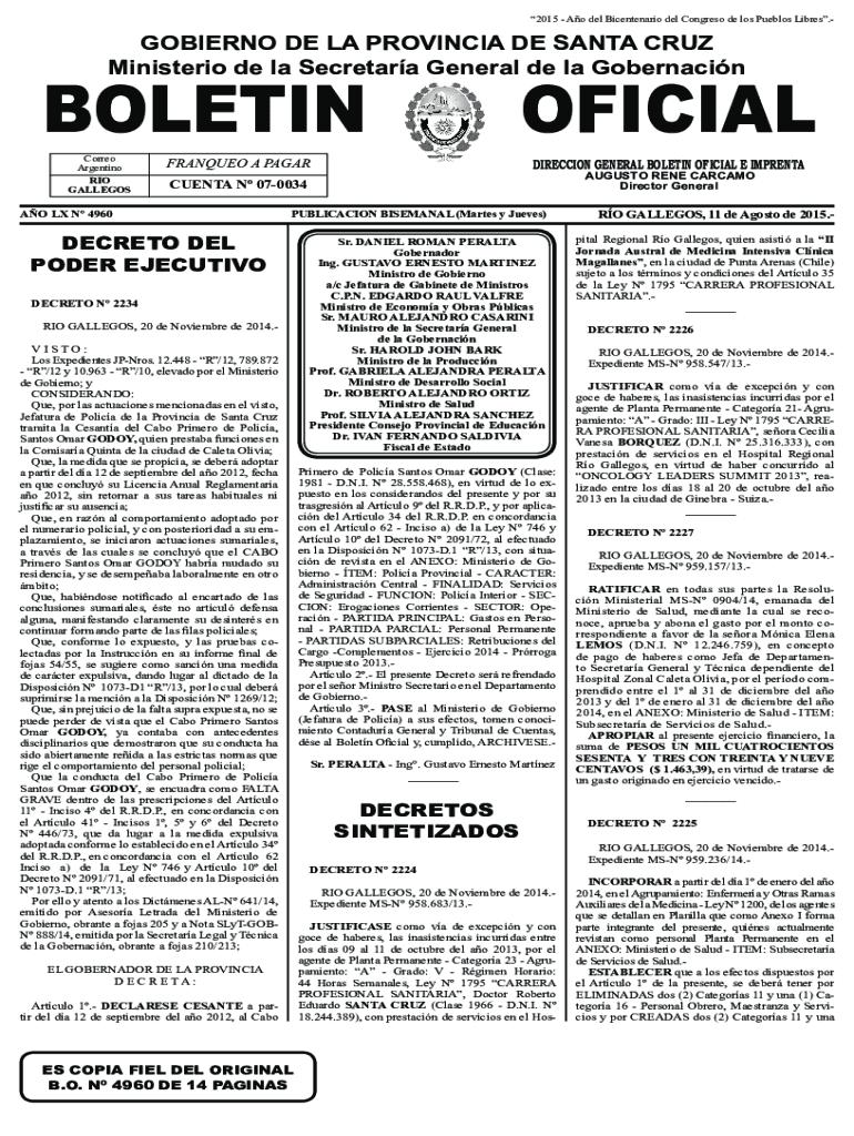 2015 AO Del Bicentenary del Congress de Los Pueblos Libras. GOVERNOR DE LA PROVINCIAL DE SANTA CRUZ