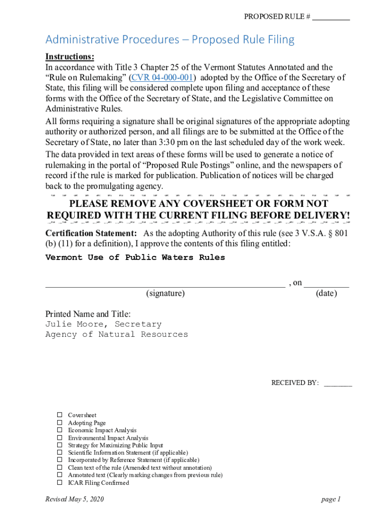 Sosvermontgovmediaz1Dlw3X1Administrative Procedures Proposed Rule is not the form you're looking for?Search for another form here.