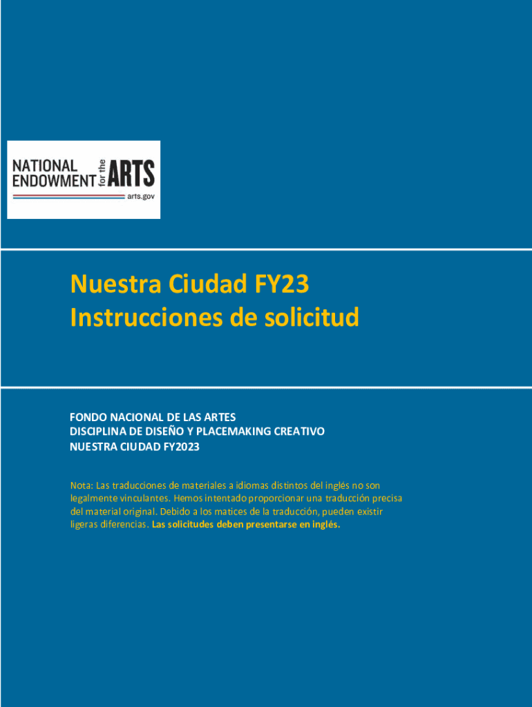 Ciudad FY23 Instructions de solicitudFONDO NATIONAL DE LAS ARTS DISCIPLINE DE DISCO Y PEACEMAKING CREATIVE CIUDAD FY2023 Not: Las traducciones de materials an idiom distinct Del single no son ligament