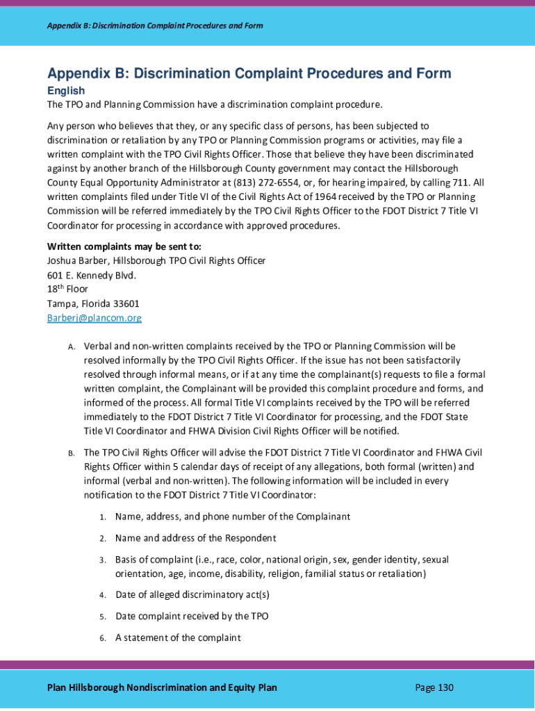 Get the free planhillsborough.orgwp-contentuploadsAppendix B: Discrimination Complaint Procedures...