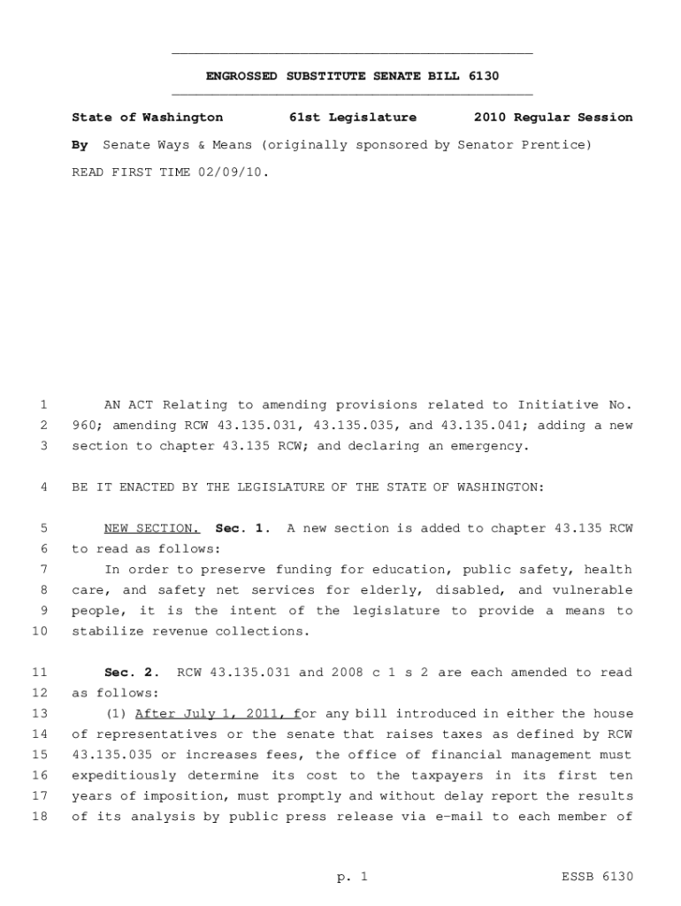 Get the free ENGROSSED SUBSTITUTE SENATE BILL 6130 - apps leg wa