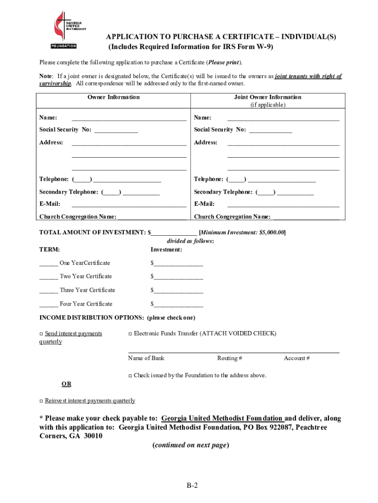 APPLICATION TO PURCHASE A CERTIFICATE INDIVIDUAL(S) (Includes Required Information for IRS Form W9) Please complete the following application to purchase a Certificate (Please print). Note: If a joint