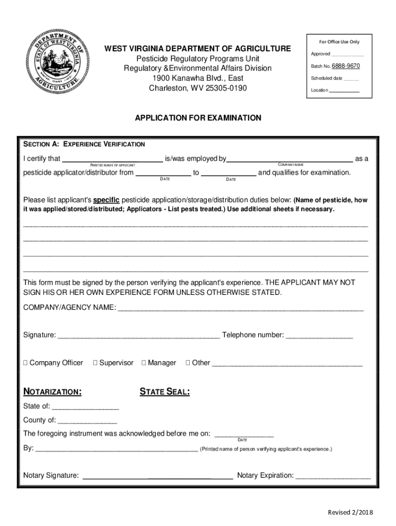 Get the free WEST VIRGINIA DEPARTMENT OF AGRICULTURE Pesticide ...