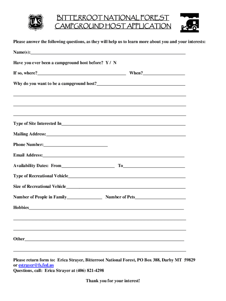 Get the free www.fs.usda.govInternetFSEDOCUMENTSBITTERROOT NATIONAL FOREST CAMPGROUND HOST APPLIC...